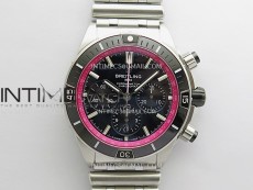 Chronomat B01 44mm SS TF 1:1 Best Edition Black Dial Pink Inner On SS Bracelet A7750 To Cal.01 (Free Rubber Strap)
