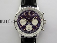 Navitimer B01 43mm SS B50 Best Edition Purple Dial White Subdial On Black Leather Strap A7750