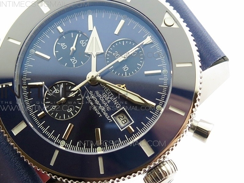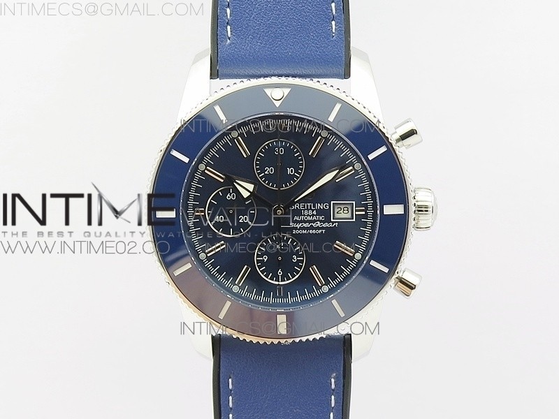 SuperOcean A13312 46mm Blue Bezel Blue Dial on SS Bracelet A7750