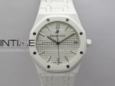 Royal Oak 15500 White Ceramic APSF 1:1 Best Edition Silver Dial On White Ceramic Bracelet SA4302 Super Clone