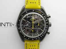 Speedmaster 44mm Ceramic SMF 1:1 Best Edition Black Skeleton Dial Yellow Hands On Yellow Leather Strap A3869 (Free Strap)