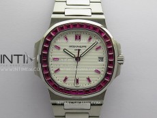 Nautilus 5711/1A Red T Diamond SS GRF 1:1 Best Edition White Textured Dial On SS Bracelet Asian 26-330