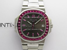Nautilus 5711/1A Red T Diamond SS GRF 1:1 Best Edition Gray Textured Dial On SS Bracelet Asian 26-330