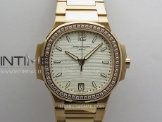 Nautilus 7118 Ladies Diamond Bezel RG DDF 1:1 Best Edition Gold Dial On RG Bracelet Super Clone DD324