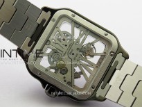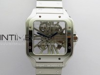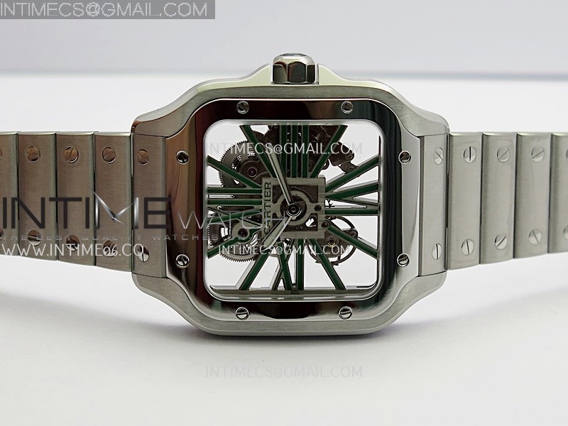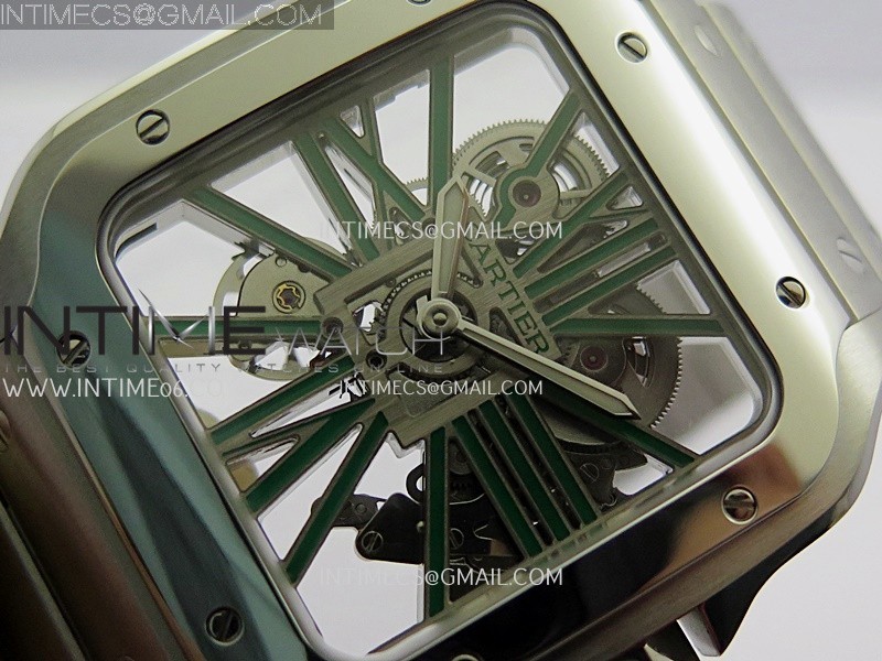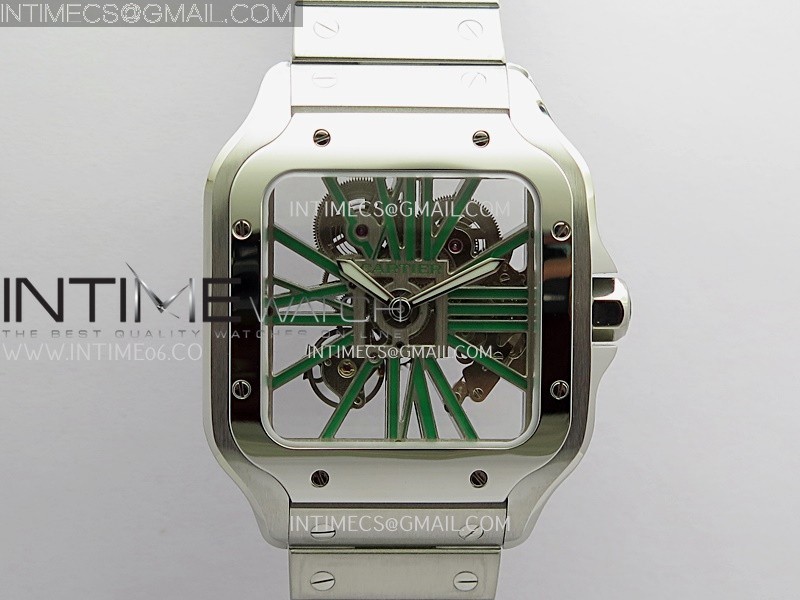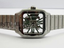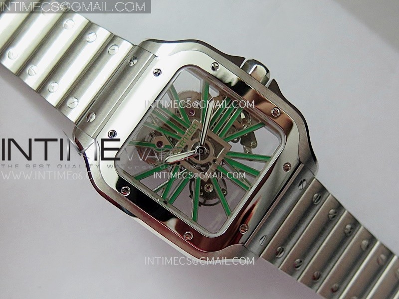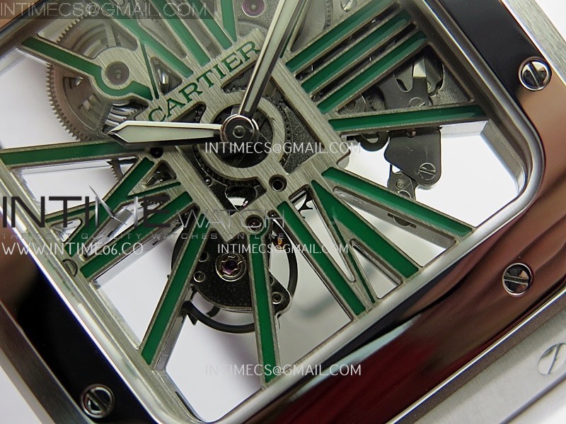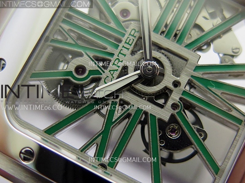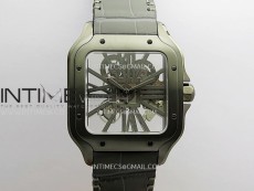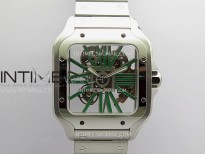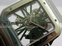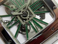 Santos Skeleton SS Rich Factory 1:1 Best Edition Skeleton Green Dial 9611MC Super Clone (Free Leather Strap)