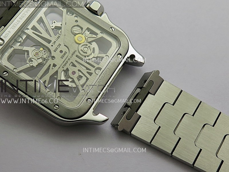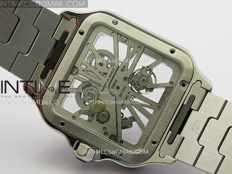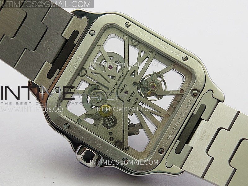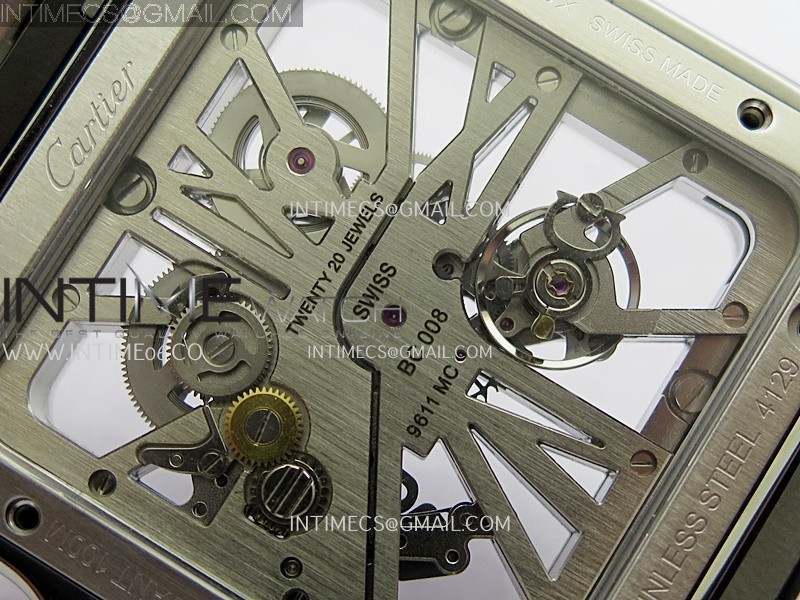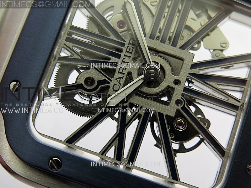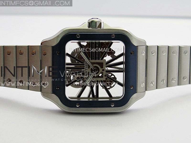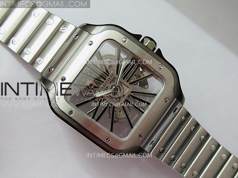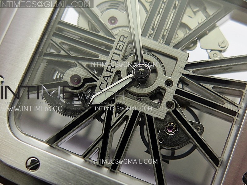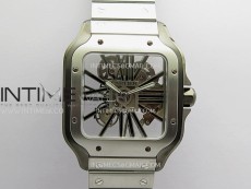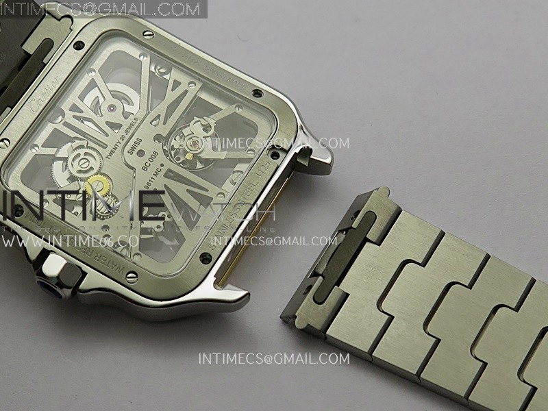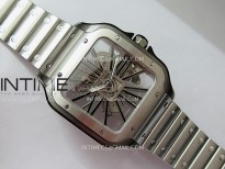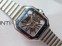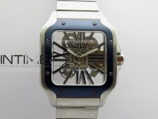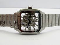 Santos Skeleton SS Rich Factory 1:1 Best Edition Skeleton Silver Dial 9611MC Super Clone (Free Leather Strap)