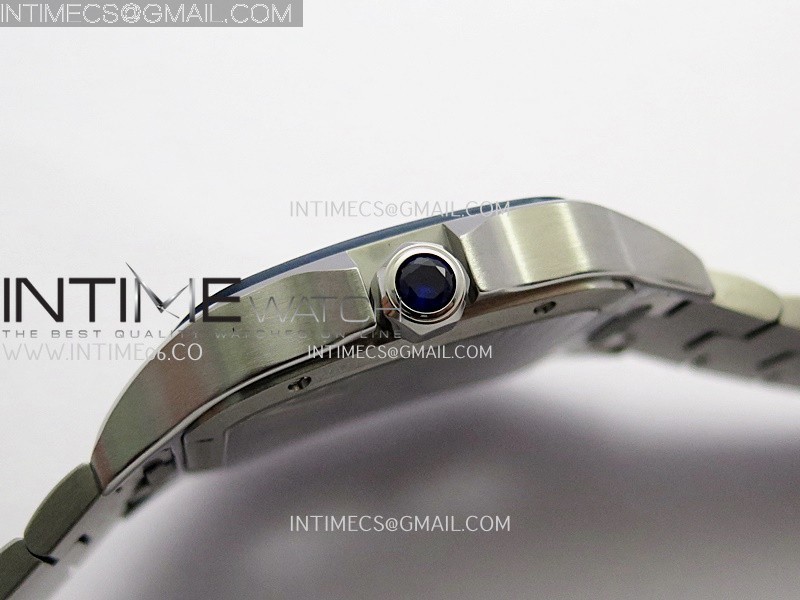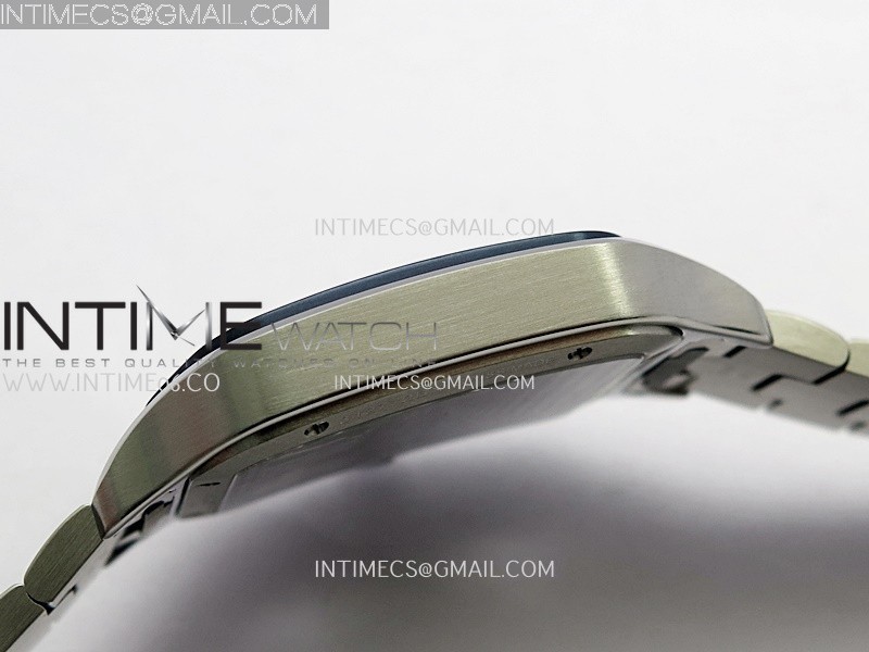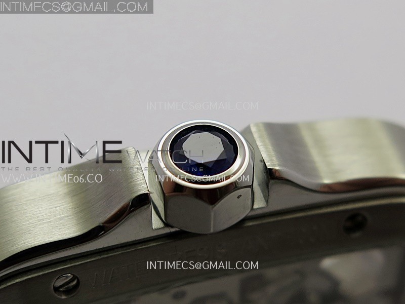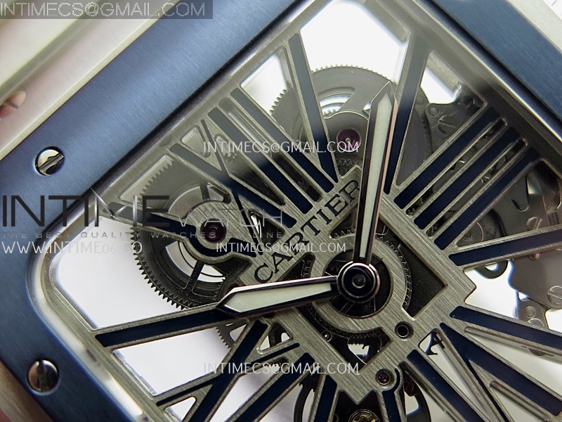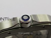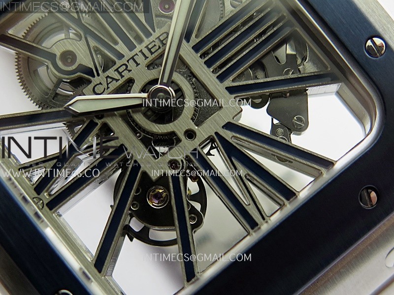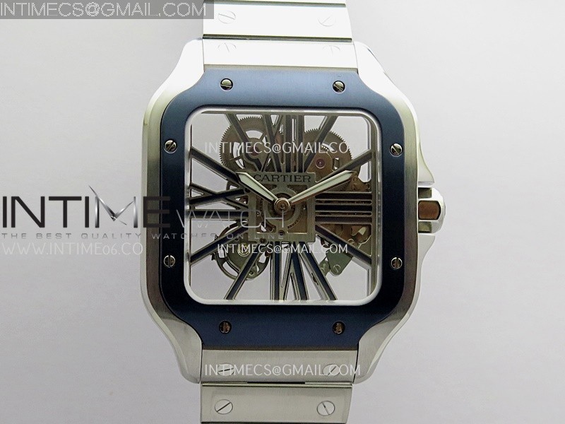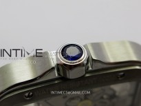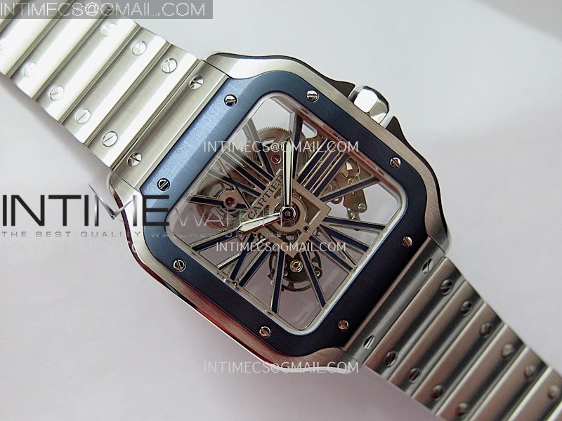 Santos Skeleton SS/Blue PVD Bezel RICH 1:1 Best Edition Skeleton Blue Dial On SS SmartLink Bracelet 9611MC Super Clone (Free Leather Strap)