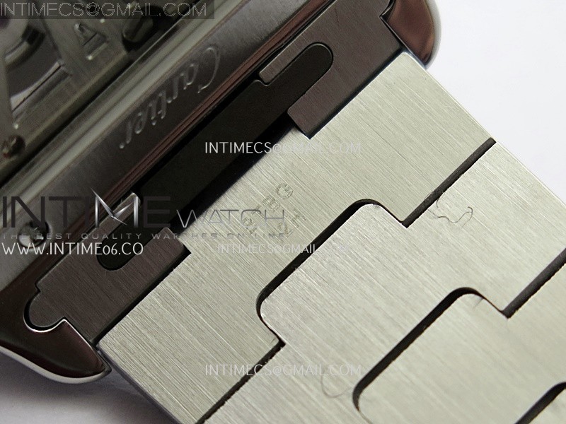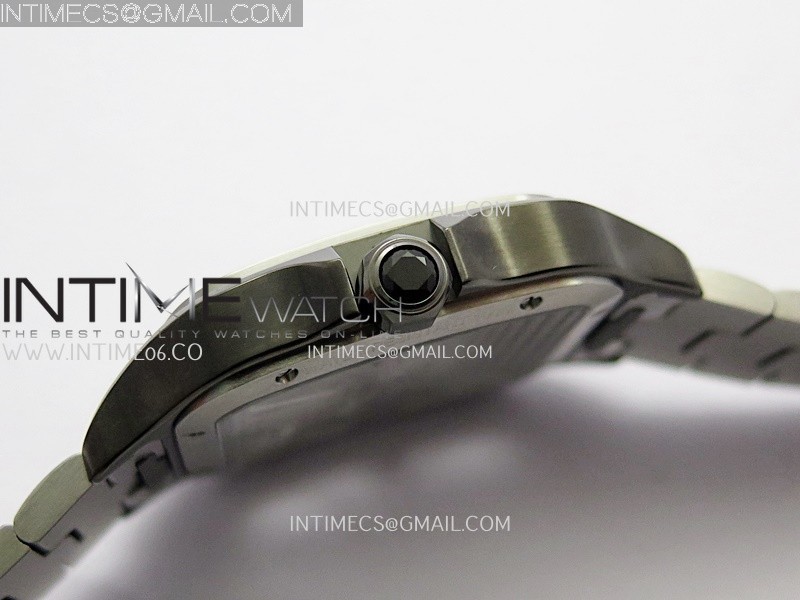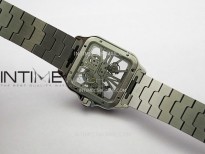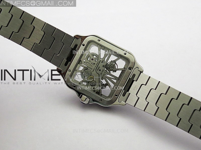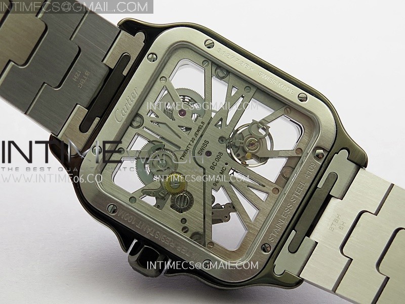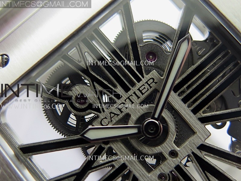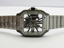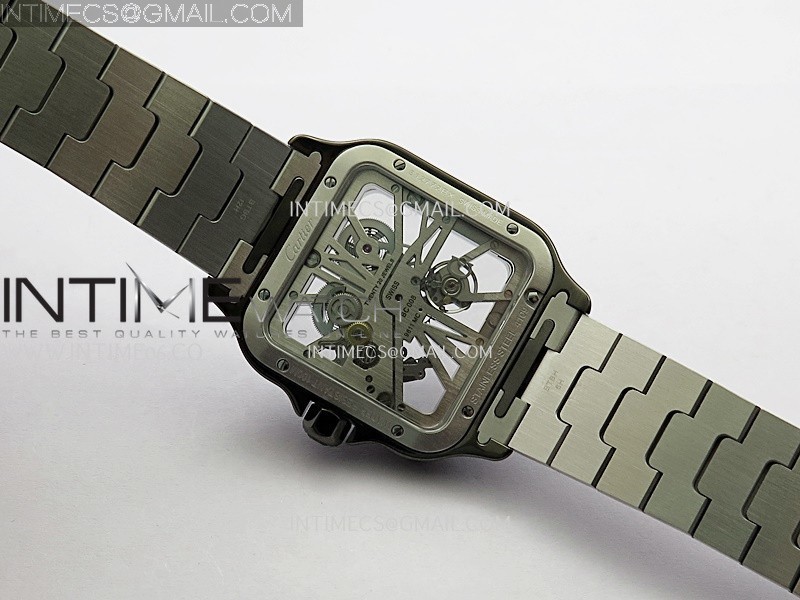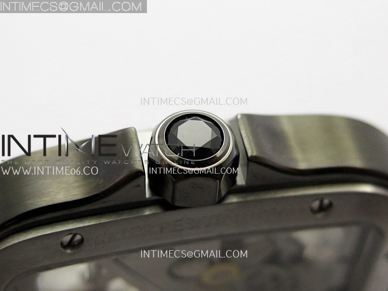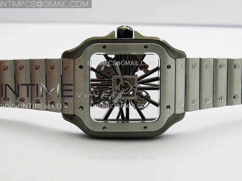 Santos Skeleton Black PVD Case RICH 1:1 Skeleton Black Dial On SS SmartLink Bracelet 9611MC Super Clone (Free Leather Strap)