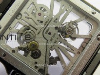 Santos Skeleton PVD RICH Factory 1:1 Best Edition Skeleton black Dial On Black Leather Strap 9612MC Super Clone