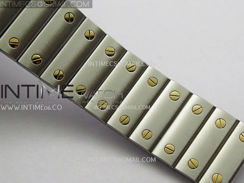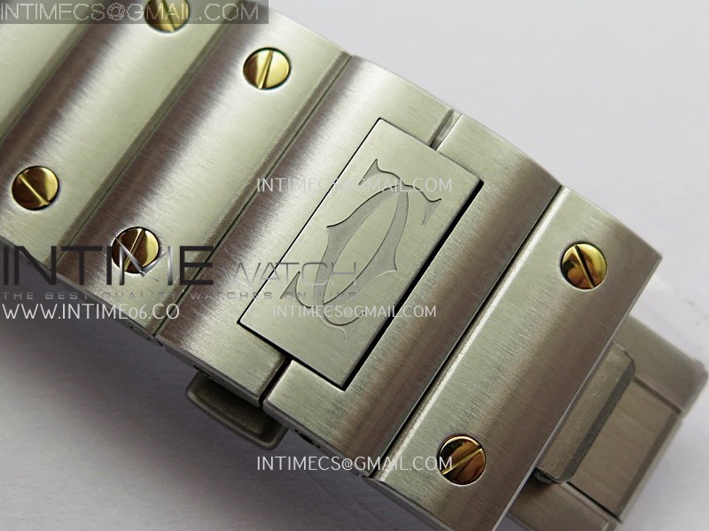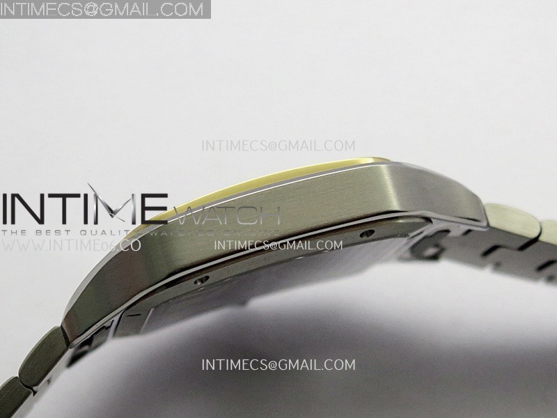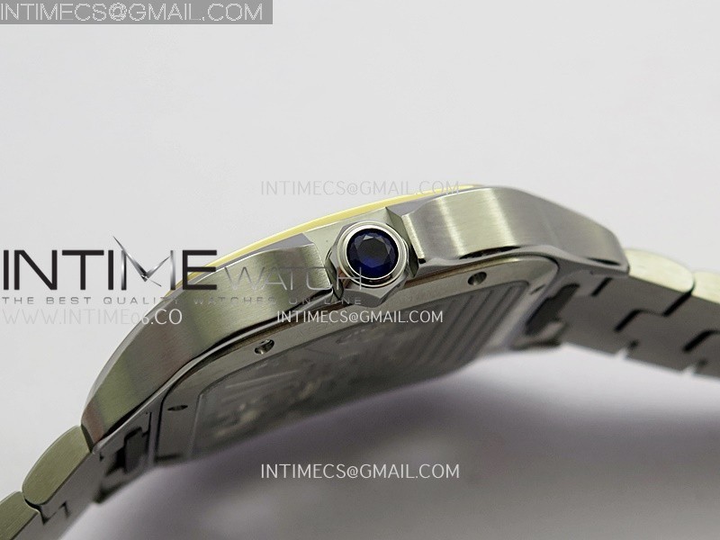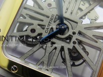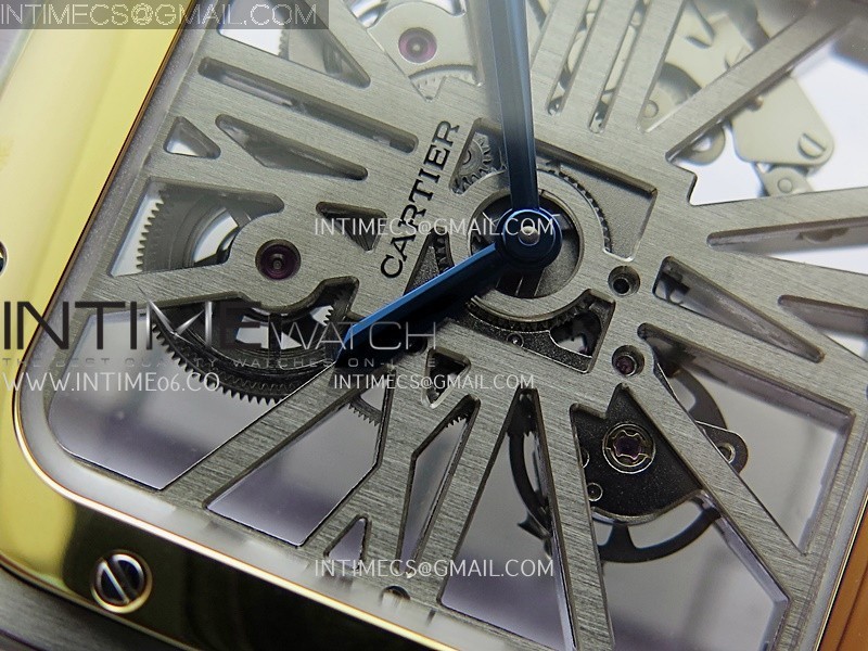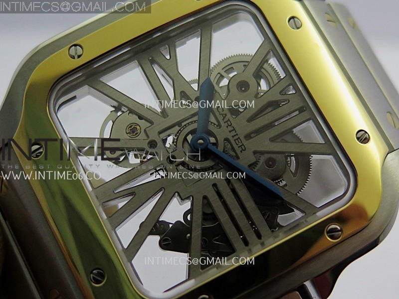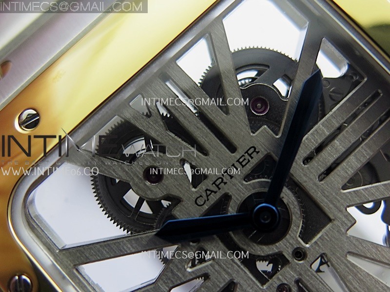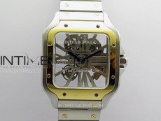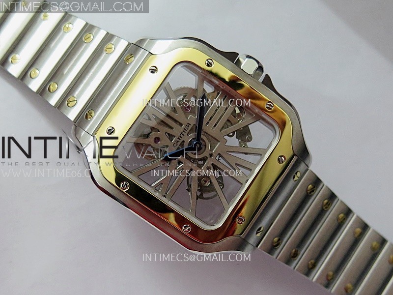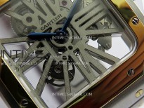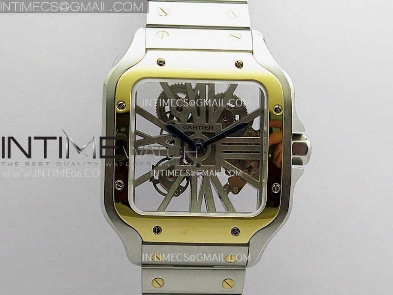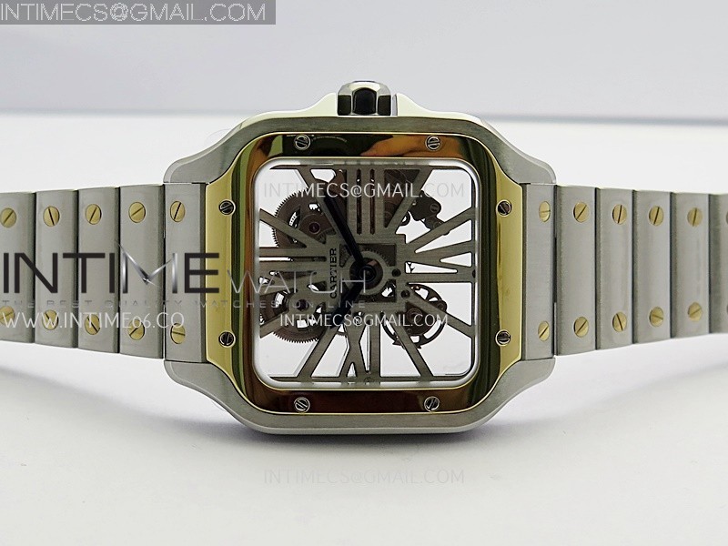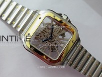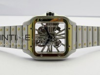 Santos Skeleton Black SS/YG Rich Factory 1:1 Skeleton Silver Dial On SS/YG SmartLink Bracelet 9611MC Super Clone (Free Leather Strap)