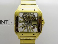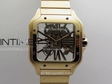 Santos Skeleton Black YG Rich Factory 1:1 Best Skeleton Dial On YG SmartLink Bracelet 9611MC Super Clone (Free Leather Strap)
