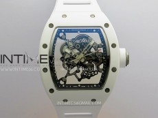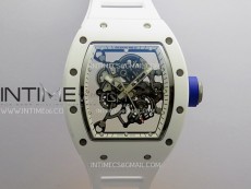 RM055 Black Inner Bezel White Ceramic RF 1:1 Best Edition Skeleton Dial On White Rubber Strap RMUL2 Super Clone (Brushed Ribs)