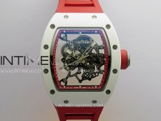 RM055 Red Inner Bezel White Ceramic RF 1:1 Best Edition Skeleton Dial On Red Rubber Strap RMUL2 Super Clone (Brushed Ribs)