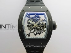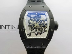 RM055 Black Case White Inner Bezel Umi Office 1:1 Best Edition Skeleton Dial Black Rubber Strap RMUL2 Super Clone (Free Sprung)
