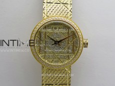 La D de Dior Satine 25mm Diamond Bezel YG 8848F 1:1 Best Edition Gold Dial On YG bracelet Swiss Quartz