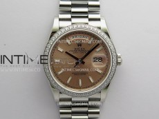 Day Date 128349 SS Gain Weight KF 1:1 Pink Dial T Diamond Marker On President Bracelet A2836