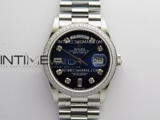 Day Date 128349 SS Gain Weight KF 1:1 Ombre Blue Dial Diamond Marker On President Bracelet A2836