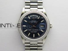 Day Date 128349 SS Gain Weight KF 1:1 Edition Blue Dial T Diamond Marker On President Bracelet A2836
