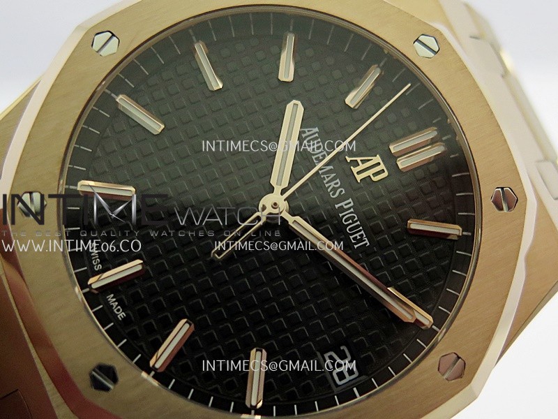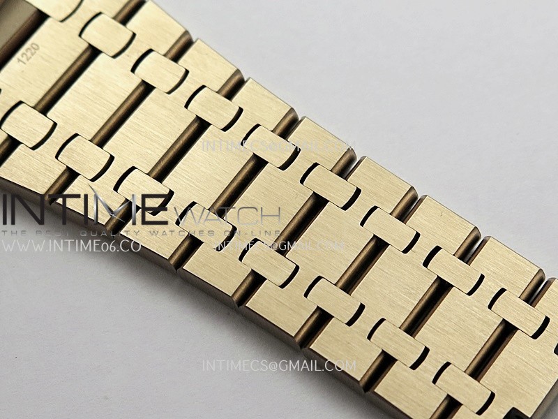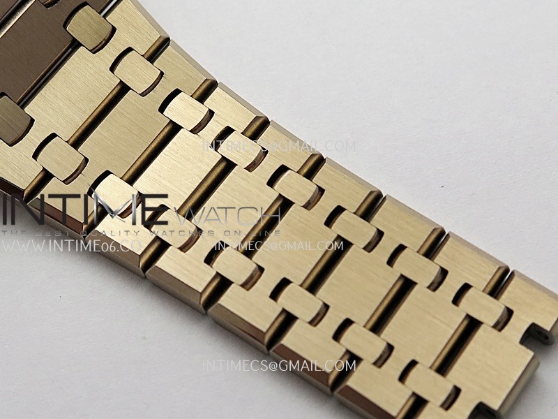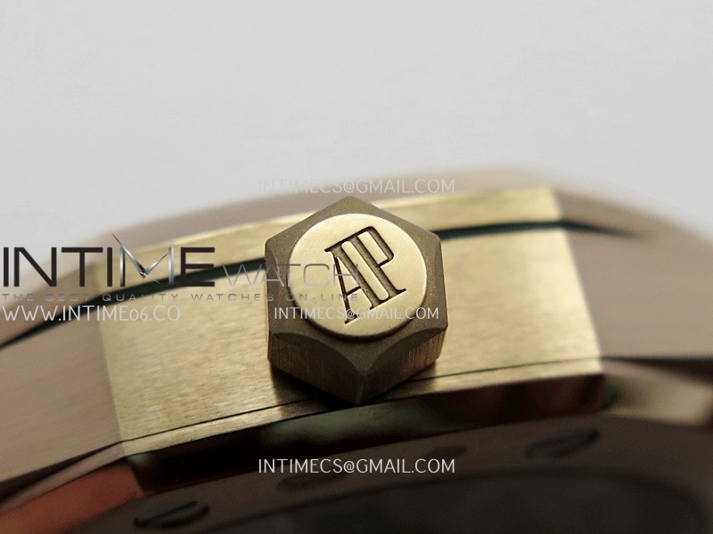 Bezel Brushed/polished 18K rose gold plated solid 316L stainless steel bezel (same brushed texture and construction as genuine) with recessed bezel screws as per genuine