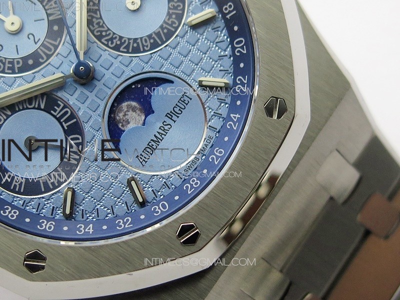 Movement Base Movement: Asian 23J Automatic Movement at 21600vph Decoration: Platinum plated movement plate and rotor which is made according to the genuine movement, the best looking AP Calibre Movement