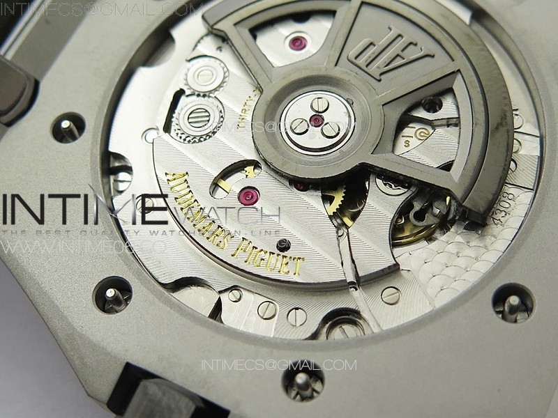 Movement Base Movement: MIYOTA 9015 automatic movement; Decoration: Platinum plated movement plate and rotor which are made according to the genuine movement, the best looking AP Calibre 4308 Movement Clone at the moment.