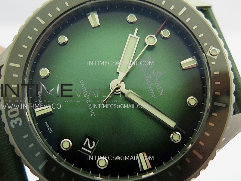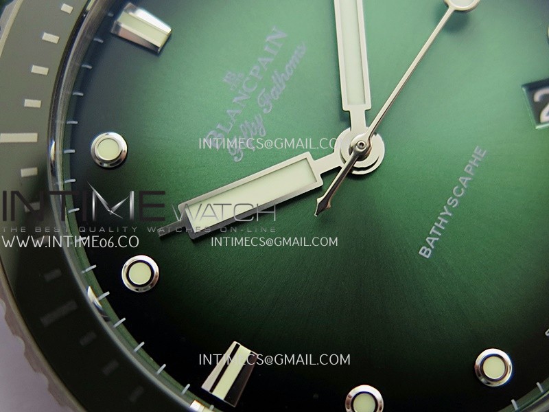 Bezel Unidirectional green ceramic bezel and Liquidmetal hour-markers (Sapphire lume dot)