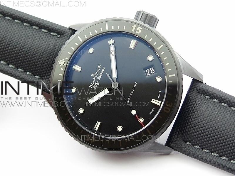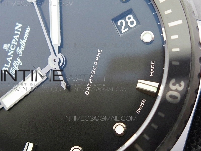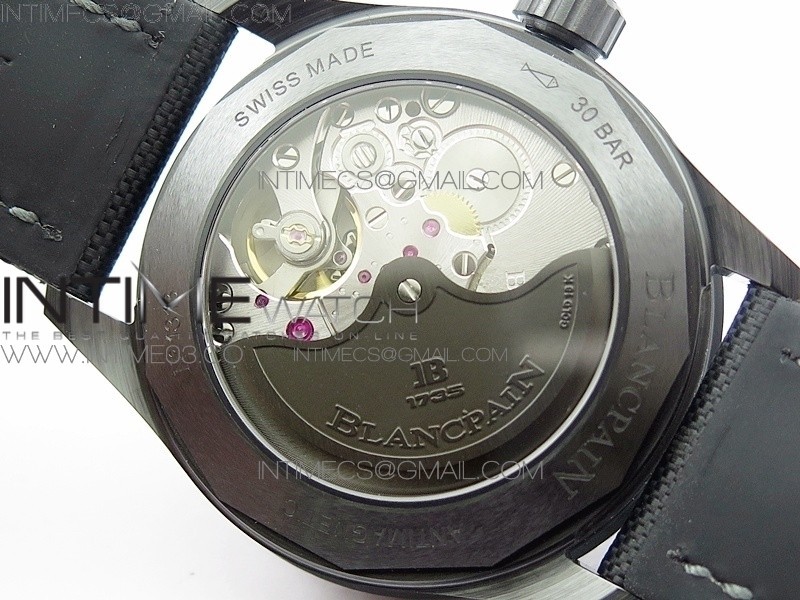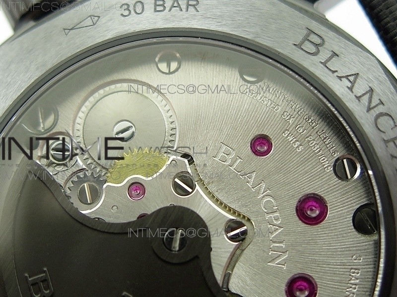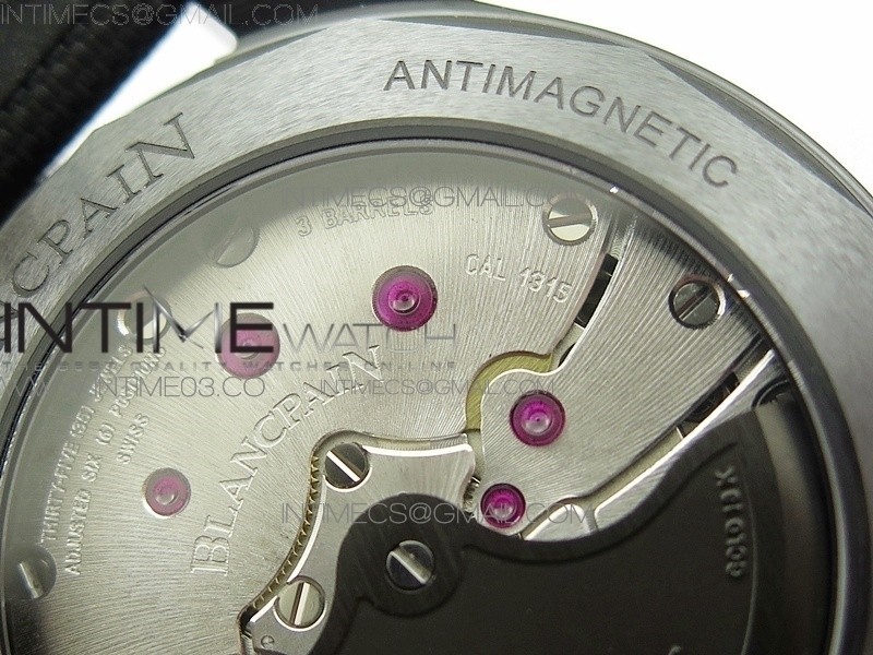 Movement Asian 23J automatic 28800 vph movement decorated to Blancpain Cal.1315 movement Functions Hours, minutes, seconds and date display