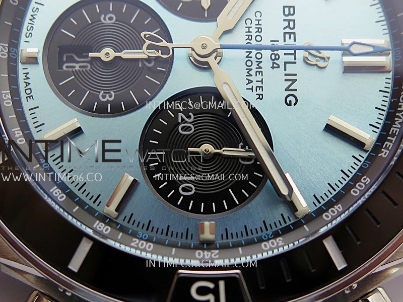 Movement Asian 7750 automatic movement at 28800 vph decorated to Breitling cal.01
