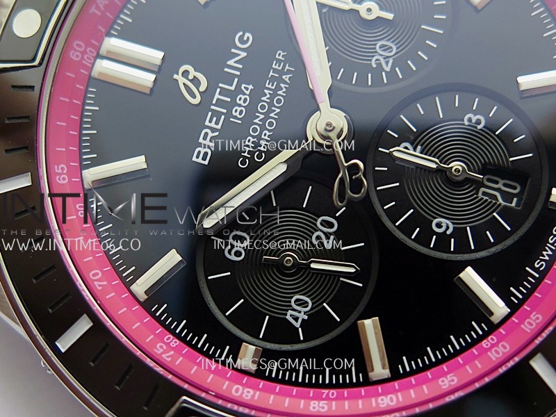 Movement Asian 7750 automatic movement at 28800 vph decorated to Breitling cal.01