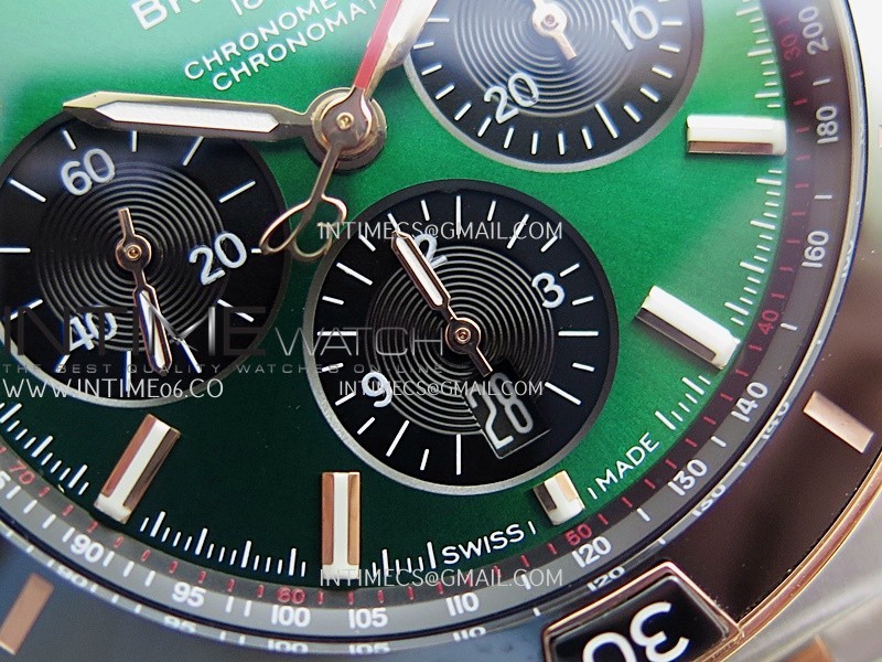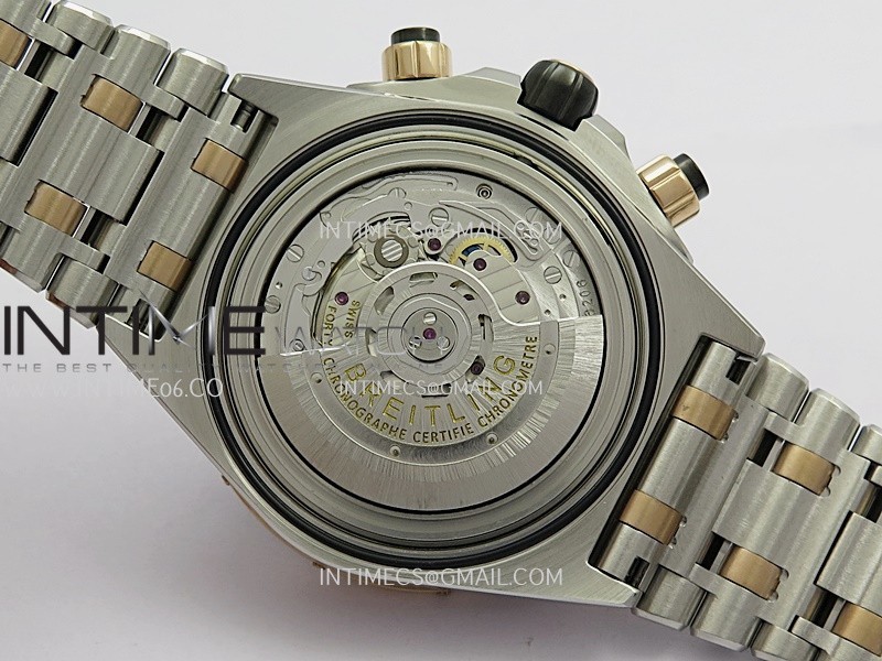 Movement Asian 7750 automatic movement at 28800 vph decorated to Breitling cal.01