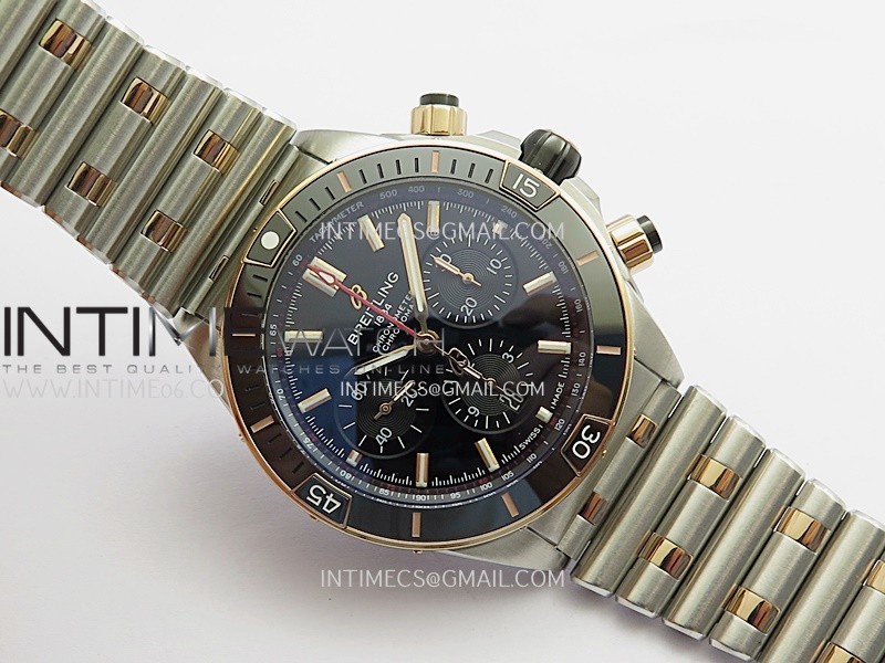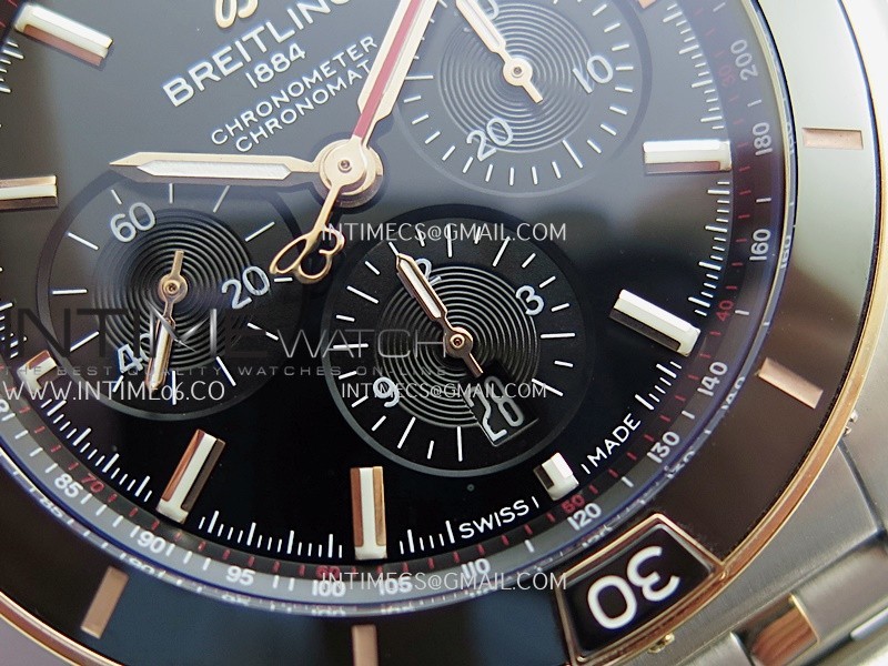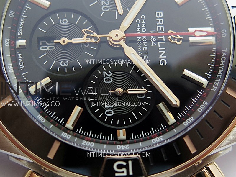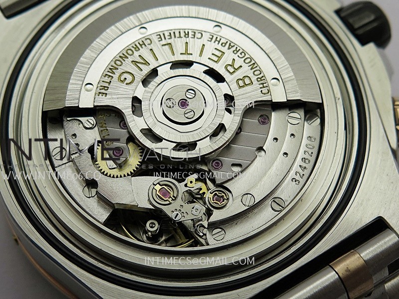Movement Asian 7750 automatic movement at 28800 vph decorated to Breitling cal.01