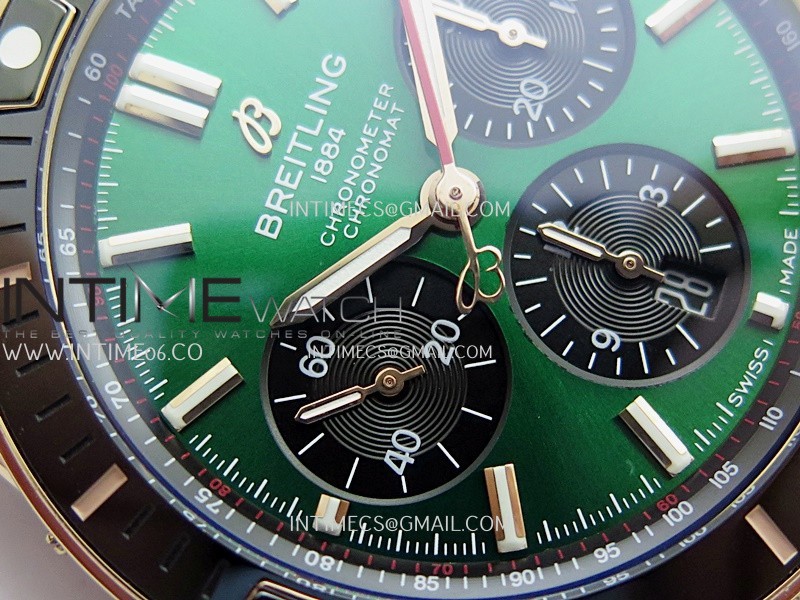 Movement Asian 7750 automatic movement at 28800 vph decorated to Breitling cal.01