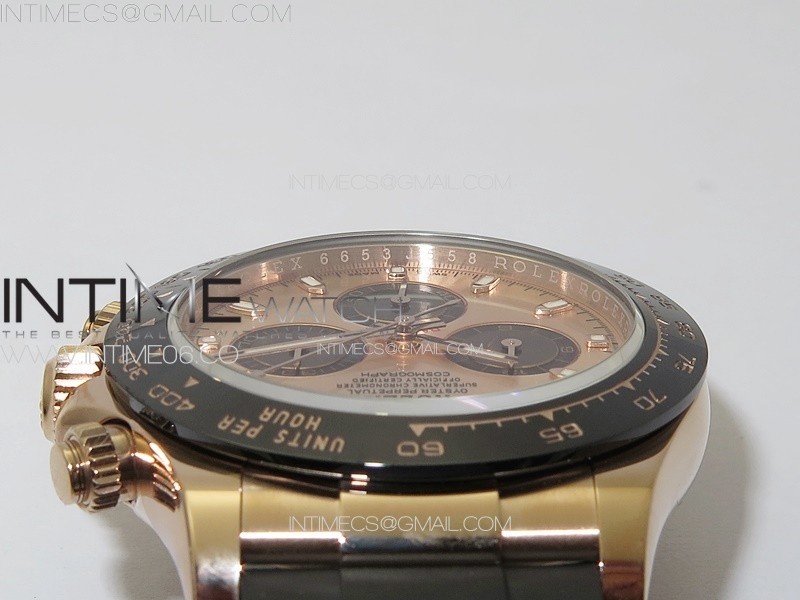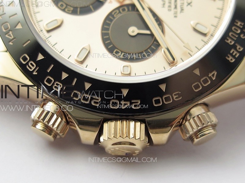 Bezel Black ceramic tachymeter bezel, real gold plated correct markers, same shape and depth as genuine bezel