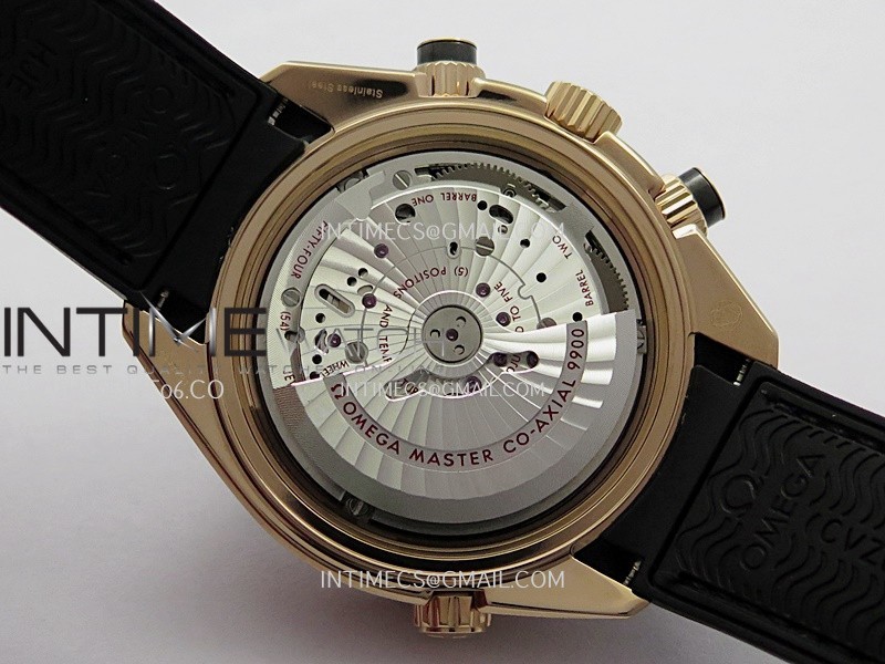 Movement Asian 7750 automatic chronograph movement decorate to Omega 9900 movement with the black balance wheel, chronograph sub dial can work as per genuine. 72 hours power reserve.