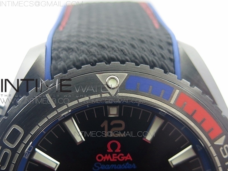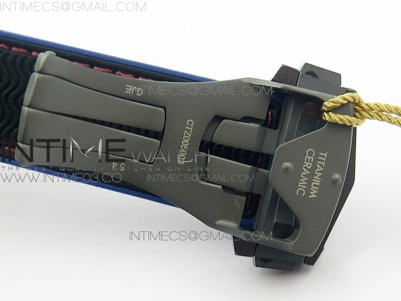 Bezel Uni-directional rotating ceramic bezel with 1/4 red&blue rubber