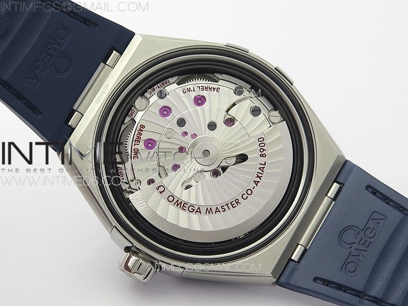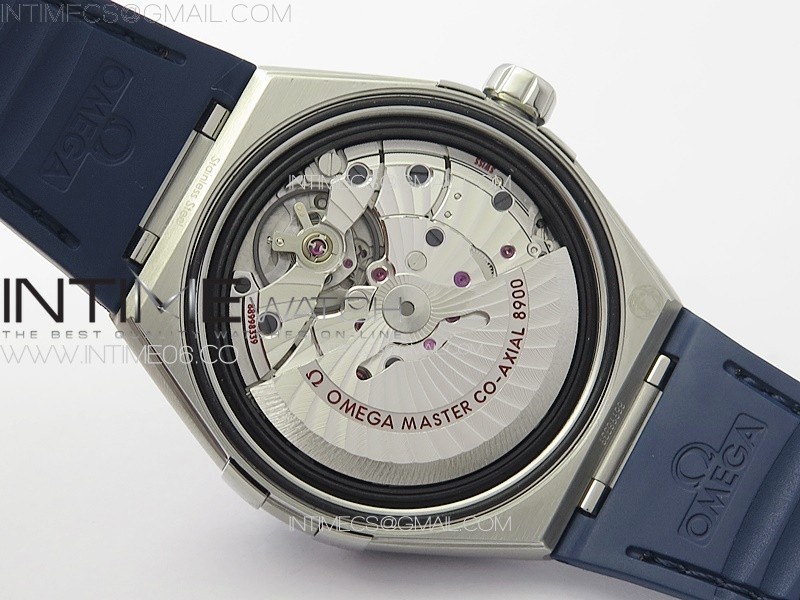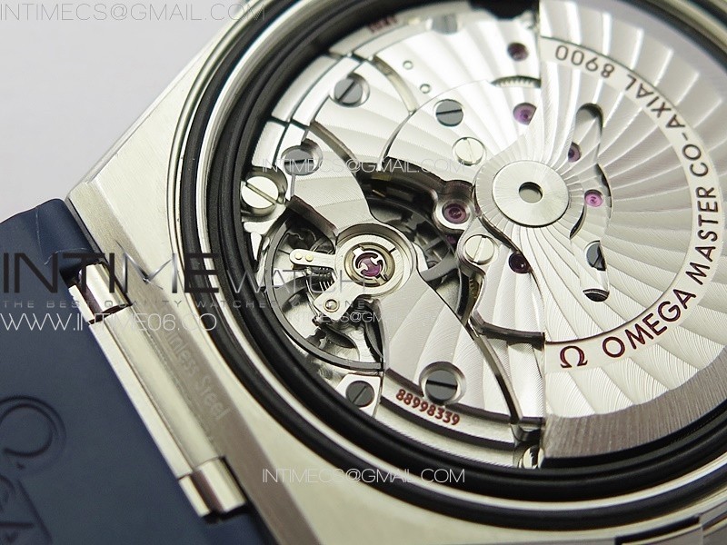 Movement Asian 2824 automatic movement decorated to Omega 8900 movement, black balance wheel as genuine.