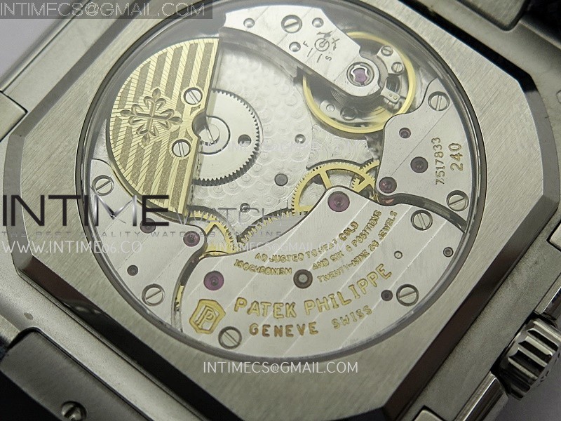 Movement Asian Super Clone PP240 movement at 21600 VPH (Same as Gen watch), same looking as genuine movement. Engraved movement.