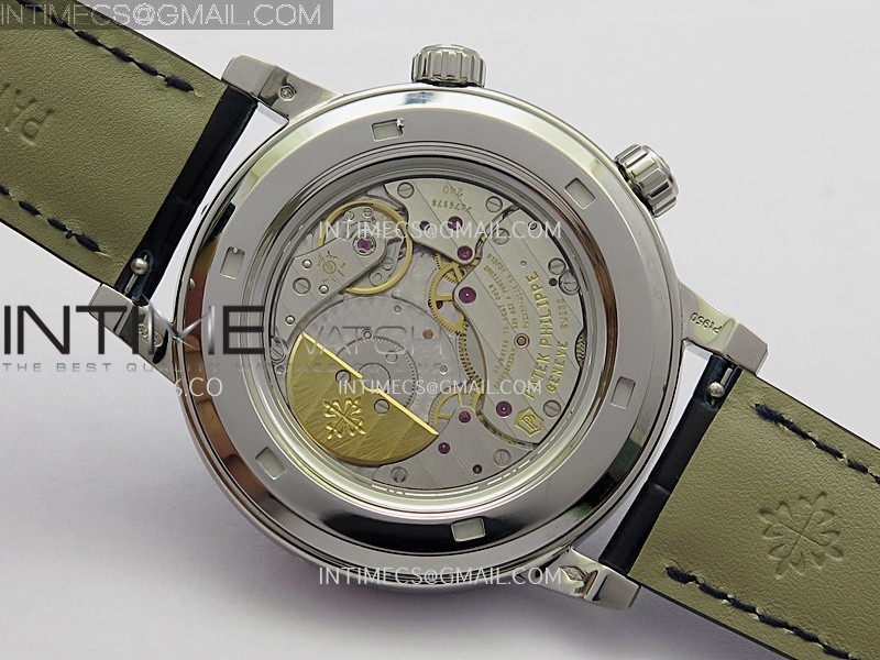Movement Asian Super Clone PP240 movement at 21600 VPH (Same as Gen watch), same looking as genuine movement. Engraved movement.