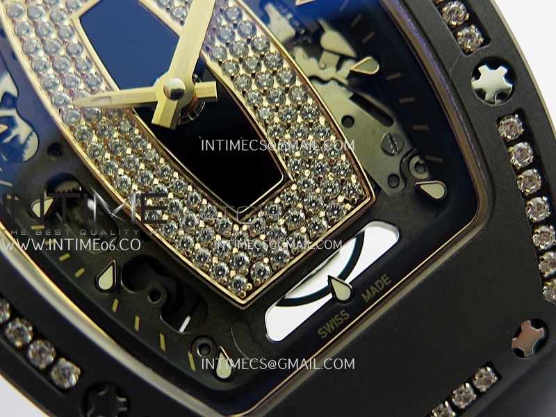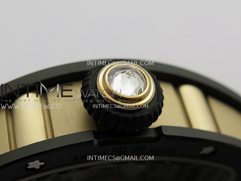 Case 18K yellow gold plated solid 316L stainless steel and real black ceramic caseback