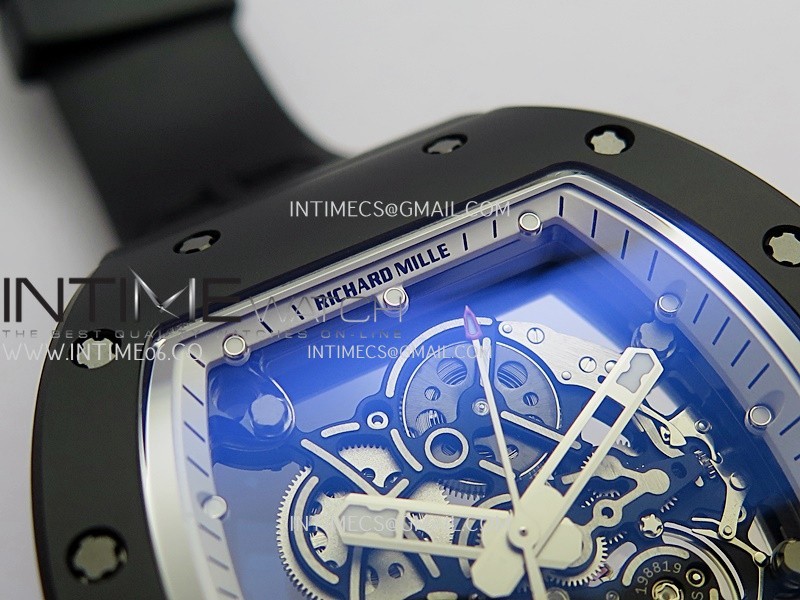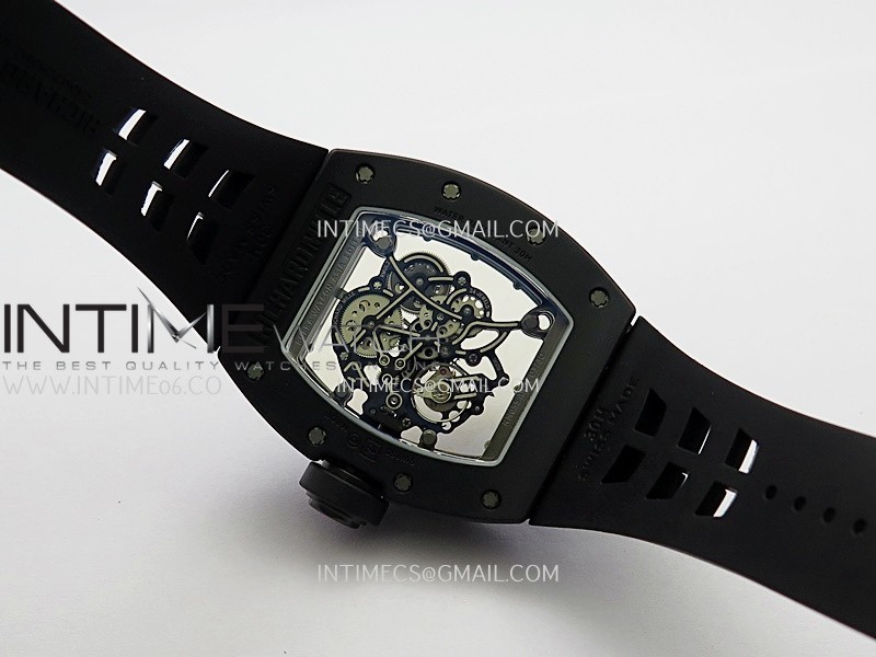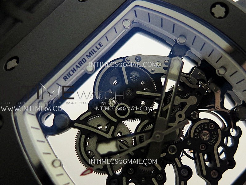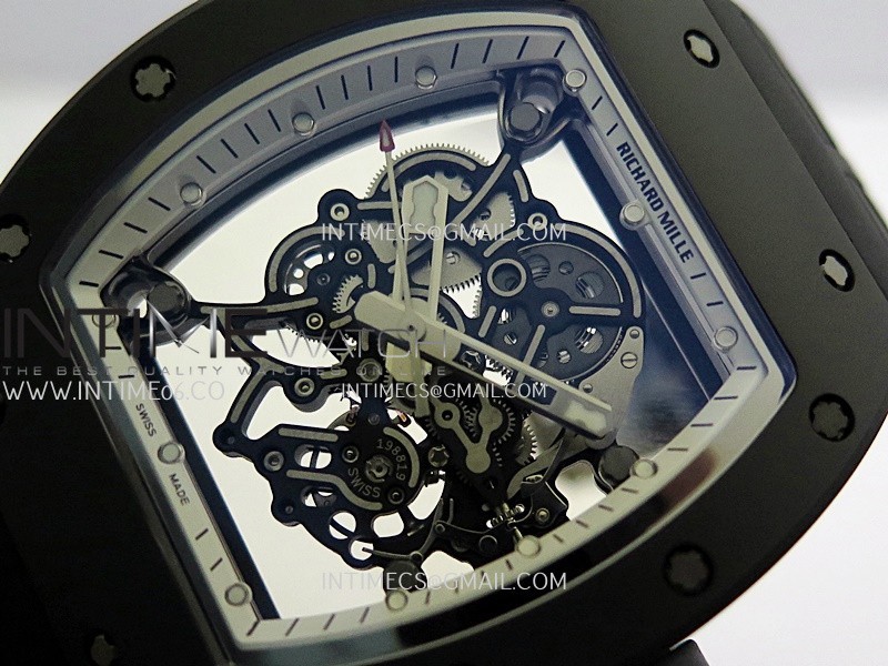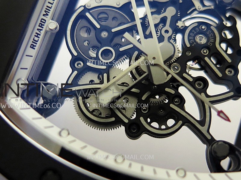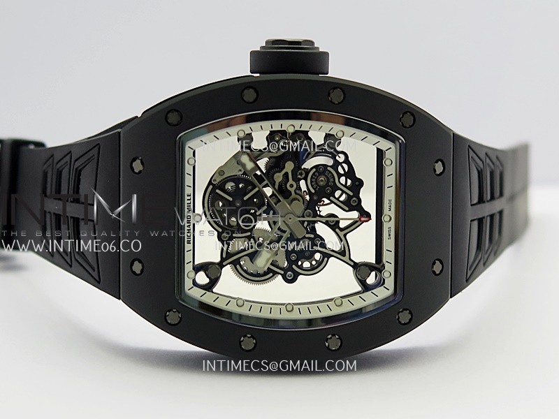 RM055 Black Case White Inner Bezel Umi Office 1:1 Best Edition Skeleton Dial Black Rubber Strap RMUL2 Super Clone (Free Sprung)