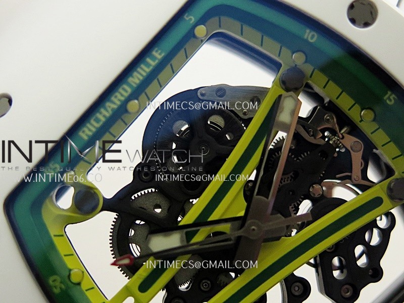 Movement Asian free sprung super clone RMUL2 skeleton movement with black ribs, the best Asian RM movement at the moment, same construction as genuine
