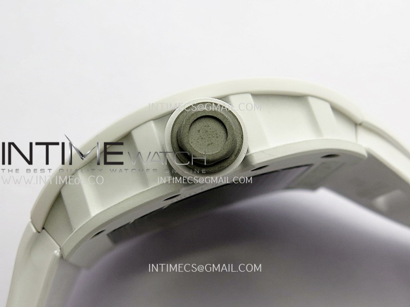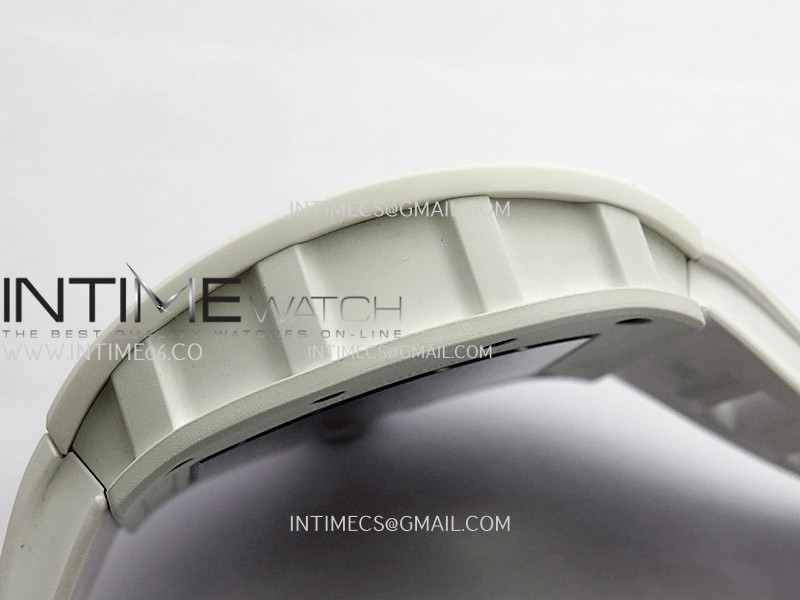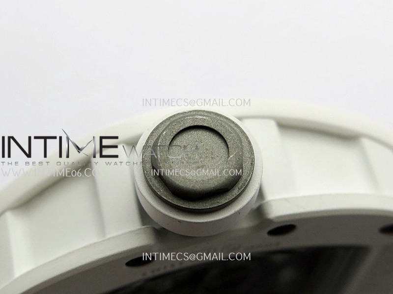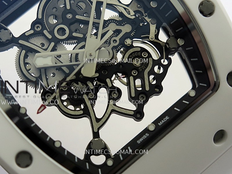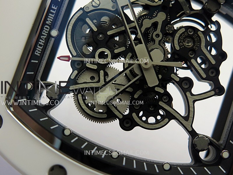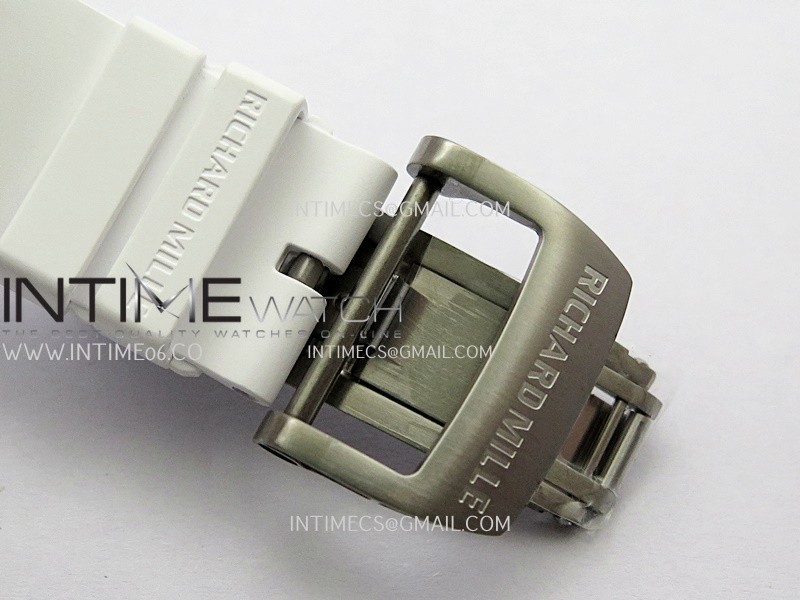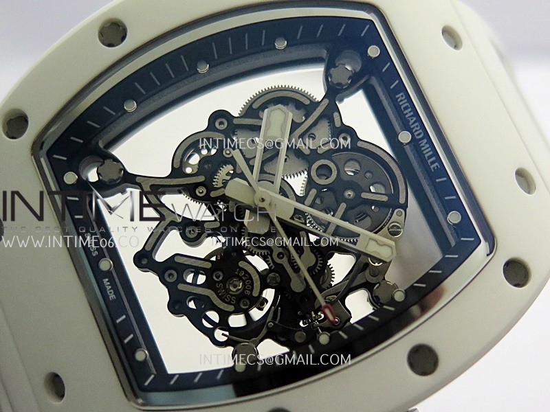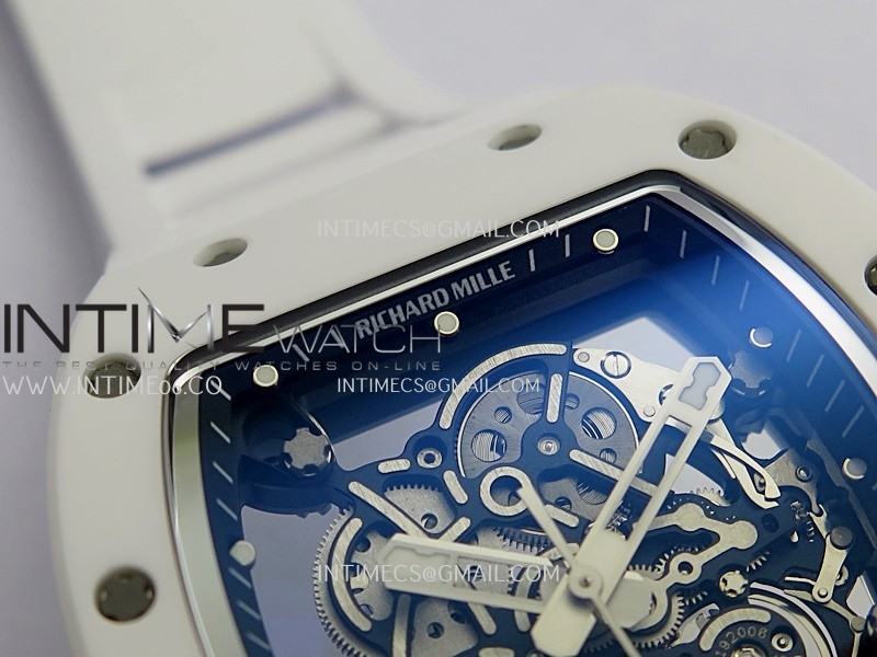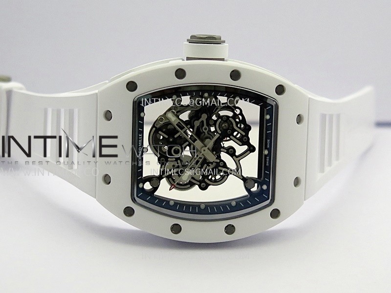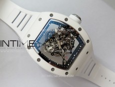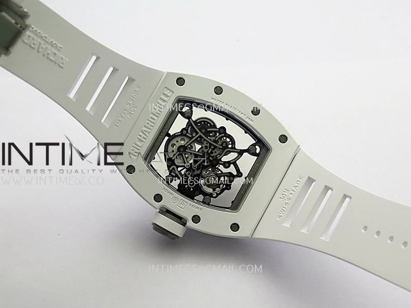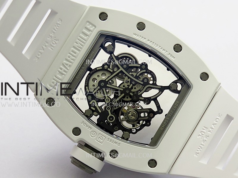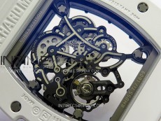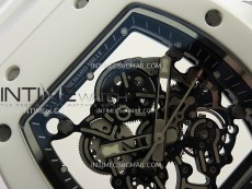 RM055 Black Inner Bezel White Ceramic RF 1:1 Best Edition Skeleton Dial On White Rubber Strap RMUL2 Super Clone (Brushed Ribs)