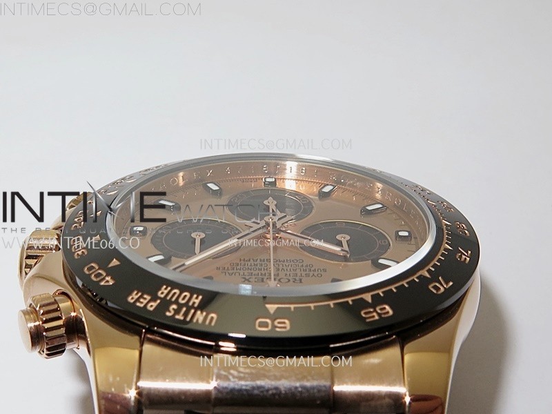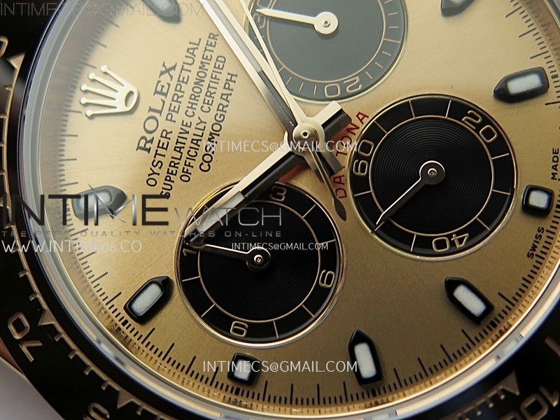 Bezel Black ceramic tachymeter bezel, real gold plated correct markers, same shape and depth as genuine bezel