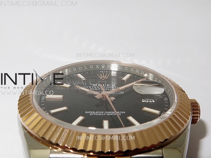 Bezel 18K rose gold plated solid 904L stainless steel fluted bezel, same shape as genuine
