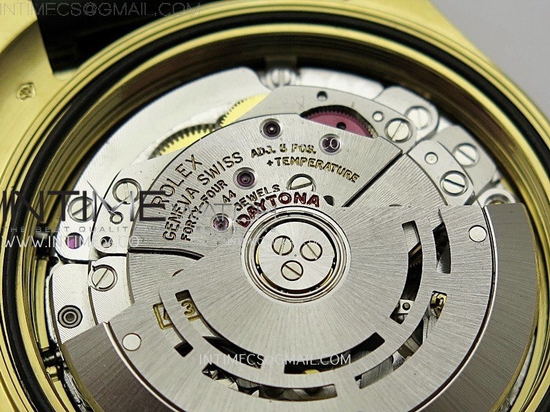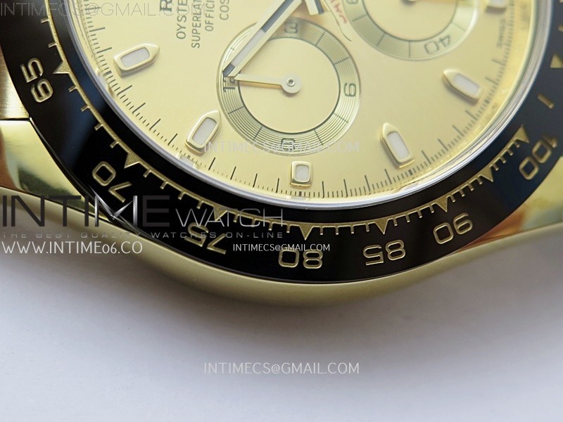 Bezel Black ceramic tachymeter bezel, real gold plated correct markers, same shape and depth as genuine bezel