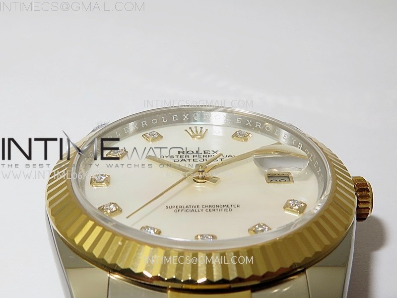 Bezel 18K yellow gold plated solid 904L stainless steel fluted bezel, same shape as genuine