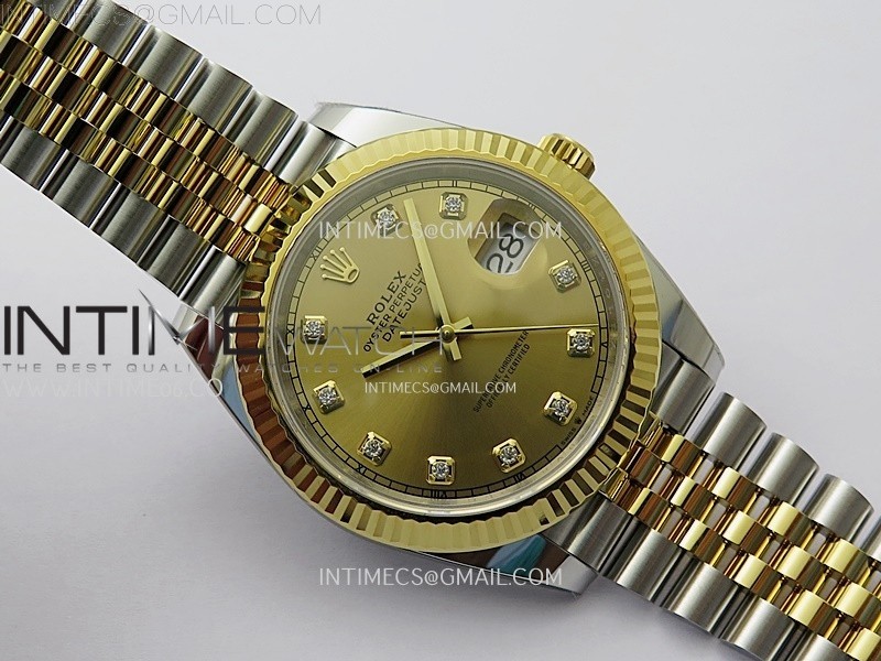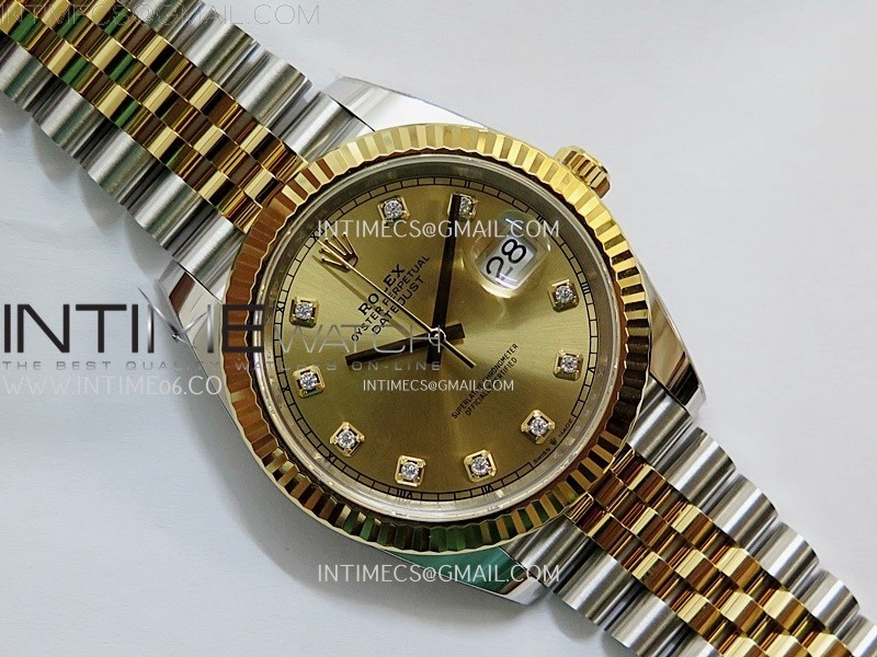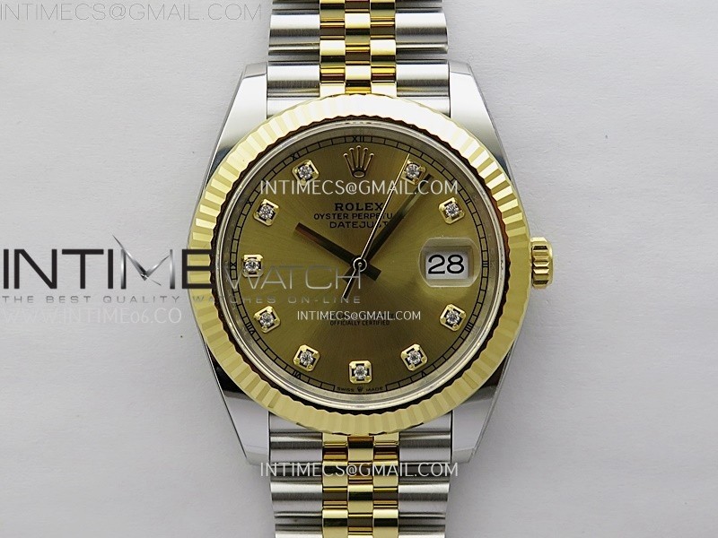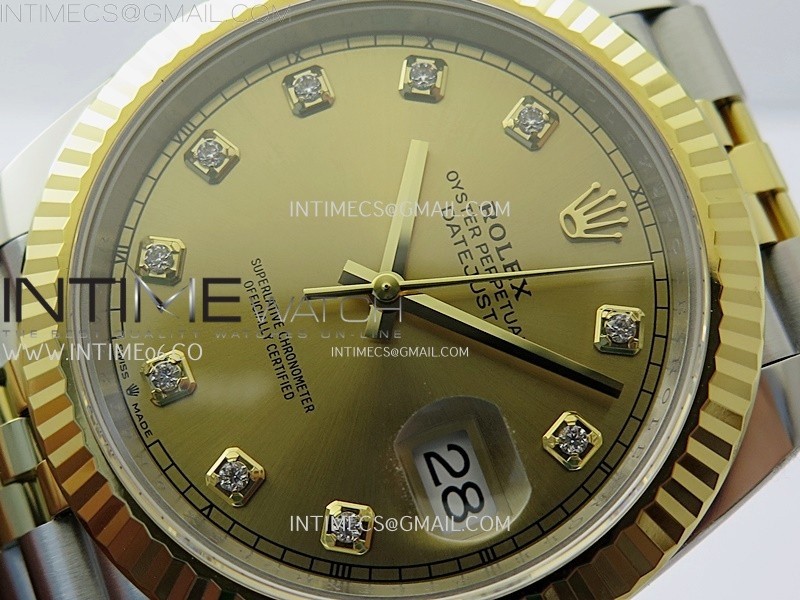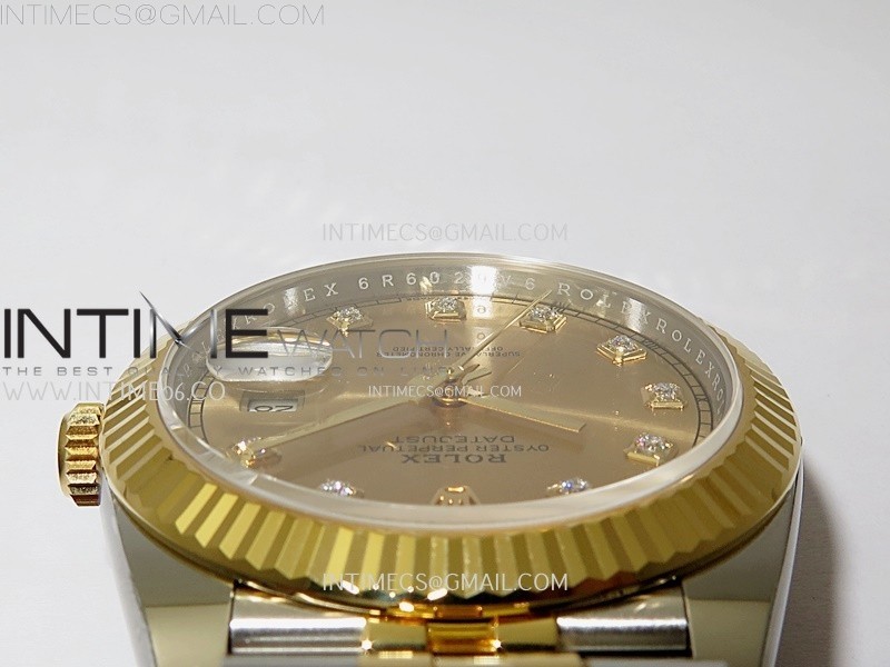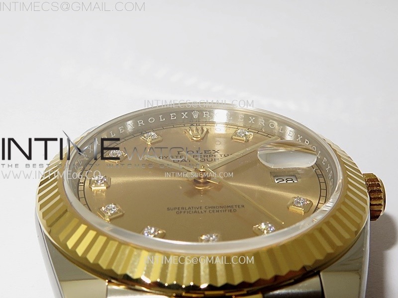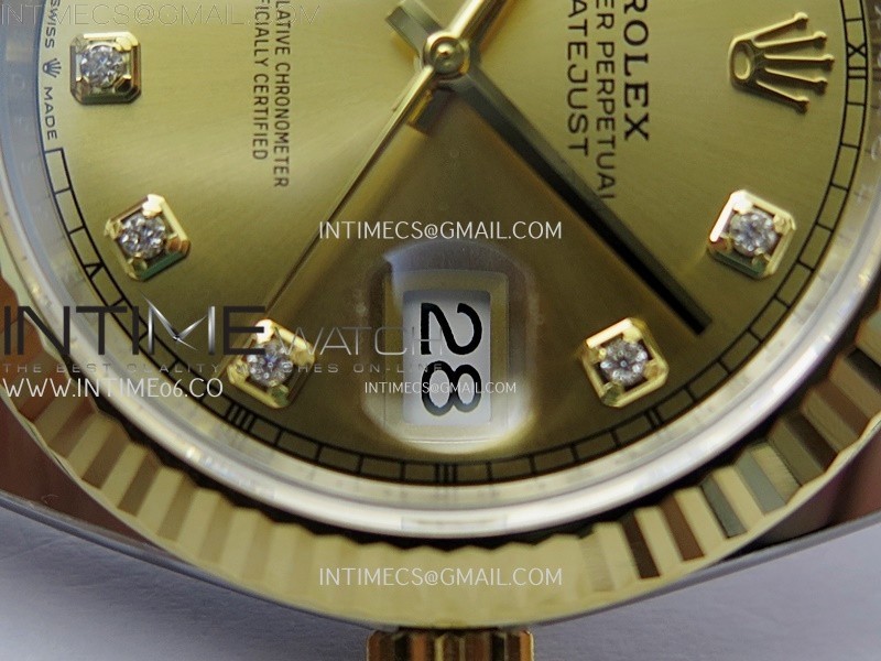 Bezel 18K yellow gold plated solid 904L stainless steel fluted bezel, same shape as genuine