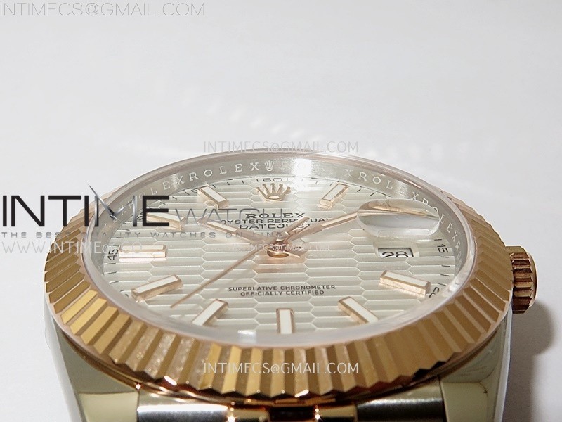 Bezel 18K rose gold plated solid 904L stainless steel fluted bezel, same shape as genuine