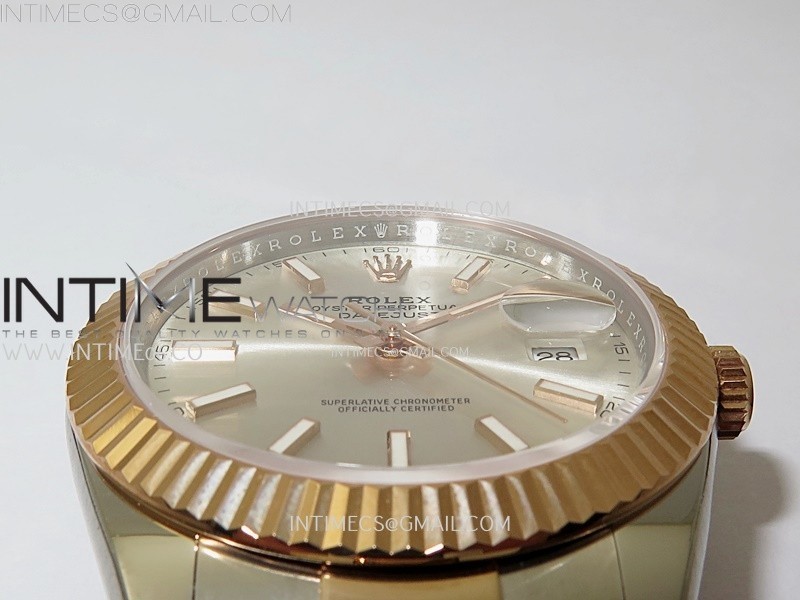 Bezel 18K rose gold plated solid 904L stainless steel fluted bezel, same shape as genuine
