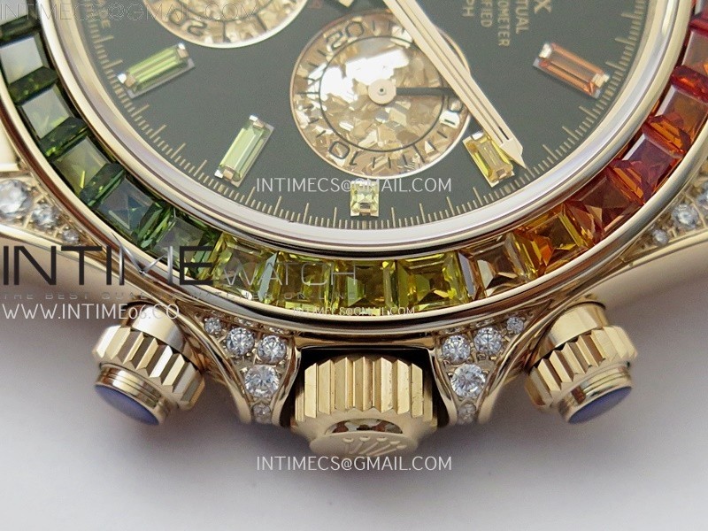 Crystal Scratch-proof sapphire crystal with semi-invisible crown etched at 6:00 position of the crystal (same as genuine and this is the first of its kind, one revolutionary breakthrough of the Rolex replicas)